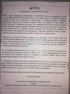 APEL do wszystkich uczestników AA Napisano 17 Maj, 2019 Autor: adminGWK123W aa wszystkie wpisy Nadesłano do nas taki apel. Zamieszczamy. Kliknij w obrazek aby powiększyć. Oceń ten wpis:Udostępnij: Kliknij, aby udostępnić na X (Otwiera się w nowym oknie) X Kliknij, aby udostępnić na Facebooku (Otwiera się w nowym oknie) Facebook Lubię Wczytywanie… Powiązane