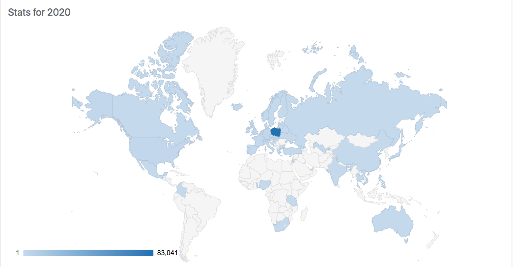 4. Strona została odwiedzona przez osoby z 54 krajów świata i praktycznie ze wszystkich kontynentów.